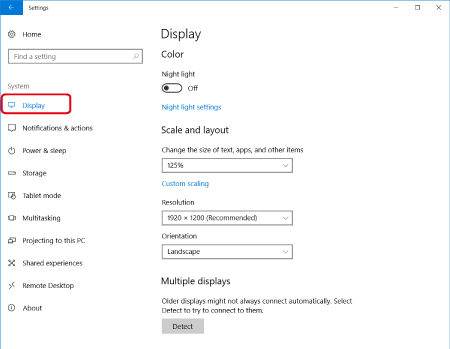 4. 從螢幕左側的清單選擇 [顯示 (Display)]。