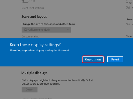 7. 要使用新解像度,按一下以下螢幕上的 [保留變更 (Keep changes)]。