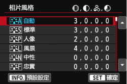 ] 設定頁下,選擇 [相片風格],然後按下 <