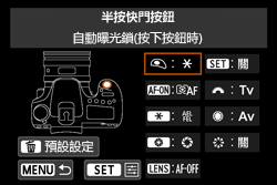 這種情況下,半按快門按鈕時,相機設定為鎖定自動曝光 (固定曝光)
