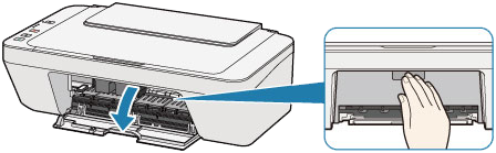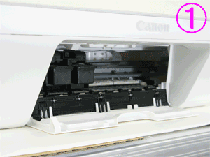 - 本機內部可能被墨水弄髒。更換 FINE 墨盒時,請小心不要弄髒雙手或衣物。您可以用棉紙或類似物品輕鬆地清潔本機內部的墨水。