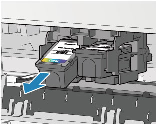 彩色 FINE 墨盒應安裝在左側插槽,黑色 FINE 墨盒應安裝在右側插槽。