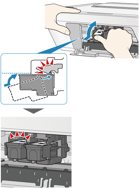 (1) 按下 FINE 墨盒直至其鎖定到位。