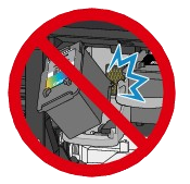 - 請勿阻擋 FINE 墨盒固定座或用力推動它。請勿在 FINE 墨盒固定座完全停止前觸摸它。