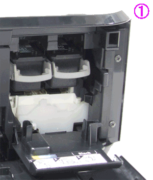 彩色 FINE 墨盒應安裝在左側插槽,黑色 FINE 墨盒應安裝在右側插槽。