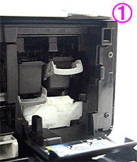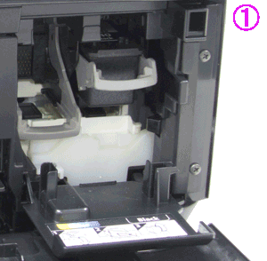 (2) 向上推墨盒鎖定桿以將 FINE 墨盒鎖定到位。