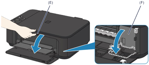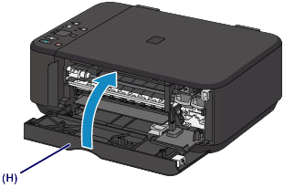 FINE 墨盒固定座移至更換位置時,列印頭蓋 (F) 將自動開啟。