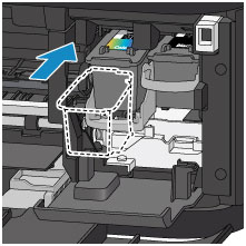 - 輕輕插入 FINE 墨盒,避免其觸碰到 FINE 墨盒固定座的電氣觸點。