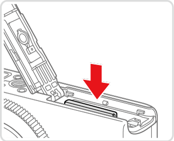開啟蓋子並沿箭頭方向按壓電池鎖。