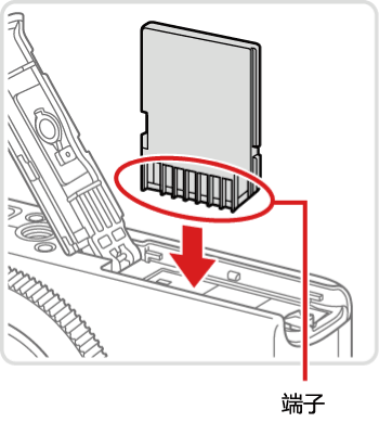 確保以正確方向插入記憶卡。以錯誤方向插入記憶卡可能會損壞相機。