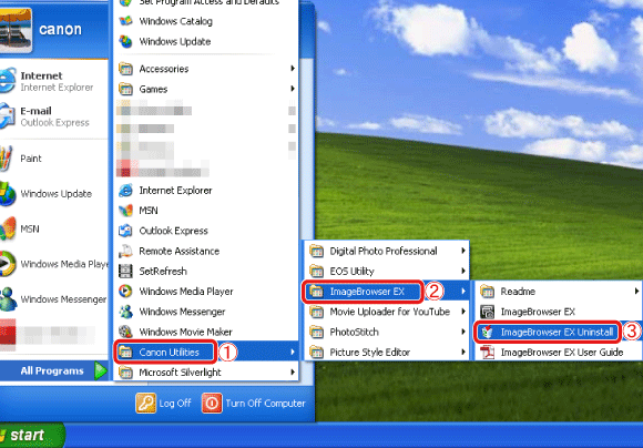 ImageBrowser EX 無法正確運作/解除安裝並重新安裝 ImageBrowser EX (Windows XP)