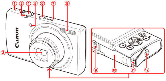 ![]() | 快門按鈕 | ![]() | 記憶卡/電池蓋 |