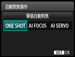 > 鍵將自動對焦操作設定為 [ONE SHOT] (單張自動對焦),然後按 <SET>。