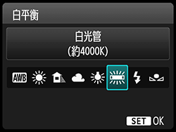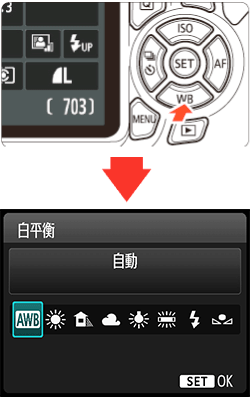 WB> 按鈕顯示 [白平衡] 螢幕。