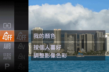 透過設定「我的顏色」可變更所需的影像色調,如將影像轉換為復古效果或黑白效果。