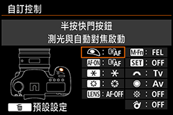 自動對焦 | ![]() | 測光與自動對焦啟動 | ![]() | ![]() | ![]() | ![]() | |||||||