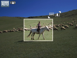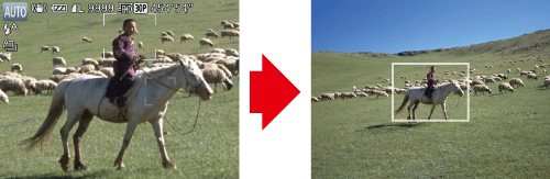 相機推遠並在之前標示的區域周圍顯示白框 (按下 <