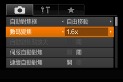 - 設定 [數碼變焦] 為 [1.6x] 或 [2.0x]。