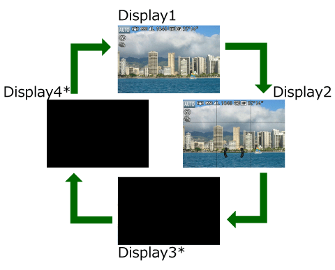 每次按下按鈕時,顯示模式將變更 (參閱以下內容)。