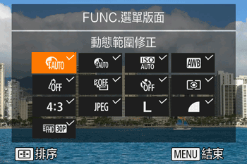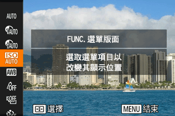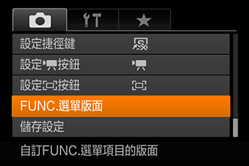 可自訂 FUNC. 選單的顯示項目。本選單中未顯示的功能將會在選單螢幕的 [