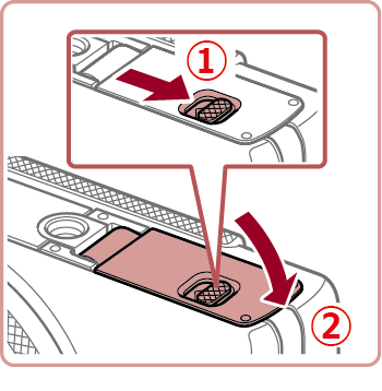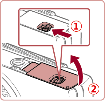 - 開啟蓋子並沿箭頭方向按壓電池鎖。