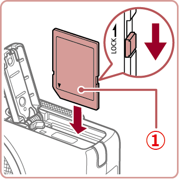 - 記憶卡的寫保護片處於鎖定位置時,無法在記憶卡上進行記錄。將保護片滑動至解鎖位置。