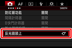 :反光鏡鎖上] 設定。如此設定已設定為 [啟用],請將其變更為 [關閉] 以關閉反光鏡鎖上功能。NOTE