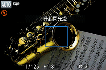 在低光照環境下以 [AUTO] 模式拍攝時,[升起閃光燈] 可能會顯示在相機螢幕上。這種情況下,請移動 <