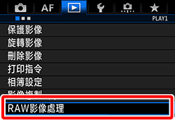 > 轉盤選擇 [RAW影像處理],然後按下 <