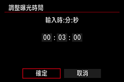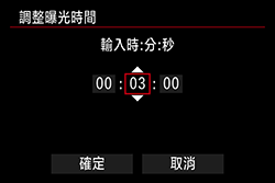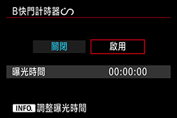 您可以預設 B 快門曝光的曝光時間。使用 B 快門計時器時,不需要在 B 快門曝光期間按住快門按鈕。