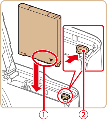 - 如果以錯誤方向插入電池,則電池無法鎖定到正確的位置。插入電池時,請隨時確認電池以正確方向鎖定到位。