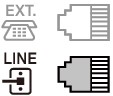 將電話連接至本機時,請確保本機已關閉,隨後將模組電纜線的一端連接至本機「EXT.」標記附近的外部設備插孔,然後將另一端接入電話的電話線插孔。