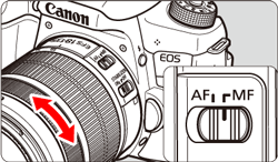 3. 完成Part I的步驟1和2後,將鏡頭對焦模式開關設定為[MF]。