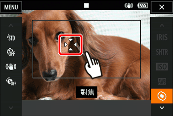 標記將在所選主體或區域上閃爍且攝錄機將自動對焦標記所在的位置。