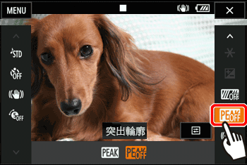 - 突出輪廓/放大僅出現在攝錄機螢幕上。不會出現在連接至攝錄機的外部顯示器上且不會影響您的記錄。