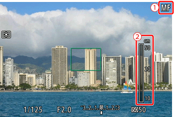 - 要解除鎖定對焦,釋放快門按鈕後並觸摸 [ MF ]。