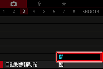 - 將 [自動對焦輔助光] 設定為 [開]。