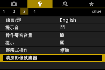 ] 選項。 - 如影像感應器上有任何清潔功能無法去除的灰塵或其他異物,請聯絡佳能客戶支援中心。