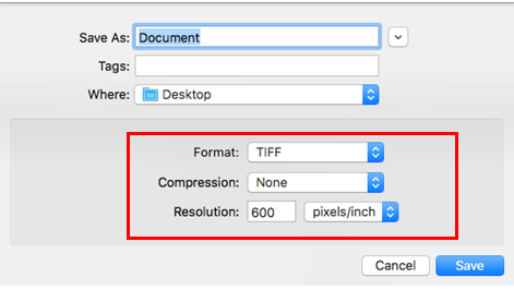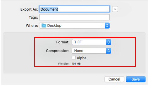3. 在「格式 (Format)」對話方塊中,選擇 [TIFF]。