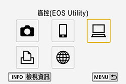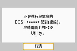 > 並在電腦上啟動 EOS Utility。 - 如果相機螢幕在執行 EOS Utility 操作程序期間自動切換,請按 <