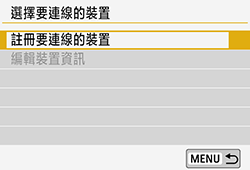 - 如果顯示多部相機,請通過顯示在相機液晶螢幕上的 MAC 位址確定要連接的相機。