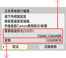 - 檢查顯示在相機液晶螢幕上的 SSID (網路名稱) (