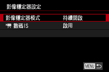對於非 IS EF-M 鏡頭,[影像穩定器模式] 選單選項將不會顯示。