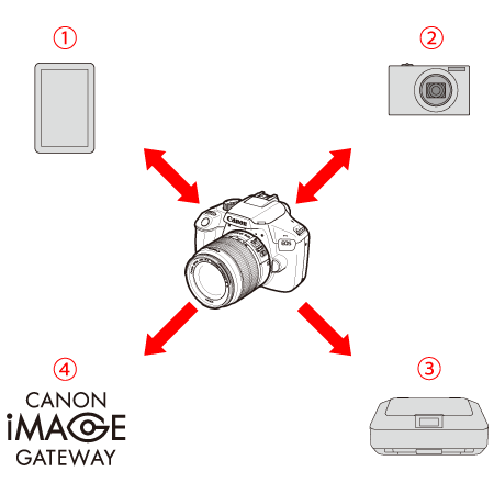 ![]() | 連接至智能手機 | 將相機以無線方式連接至智能手機或平板電腦,並使用專用應用程式「Camera Connect」遠程操作相機或檢視相機中儲存的影像。 「智能手機」指的是智能手機和平板電腦。 |