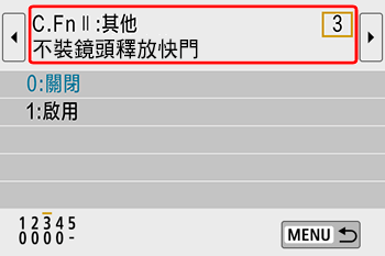 按鈕選擇 [3:不裝鏡頭釋放快門],然後按下