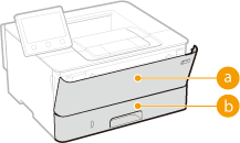 - 確保雙手握住紙匣,然後輕輕拉出。否則,如果紙匣容易滑出,將其掉落可能會損壞紙匣。