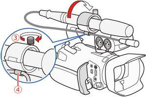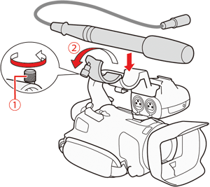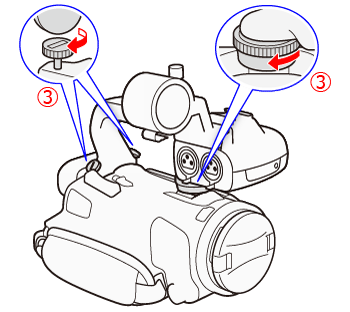 要使用INPUT 端子及麥克風支架,需要將手柄單元安裝至攝錄機。